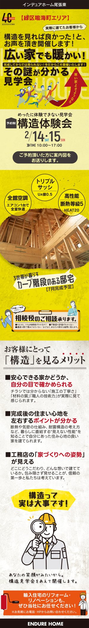 今回、名古屋市緑区鳴海町エリアで予約制構造体験会(内覧会・オープンハウス)を開催中。